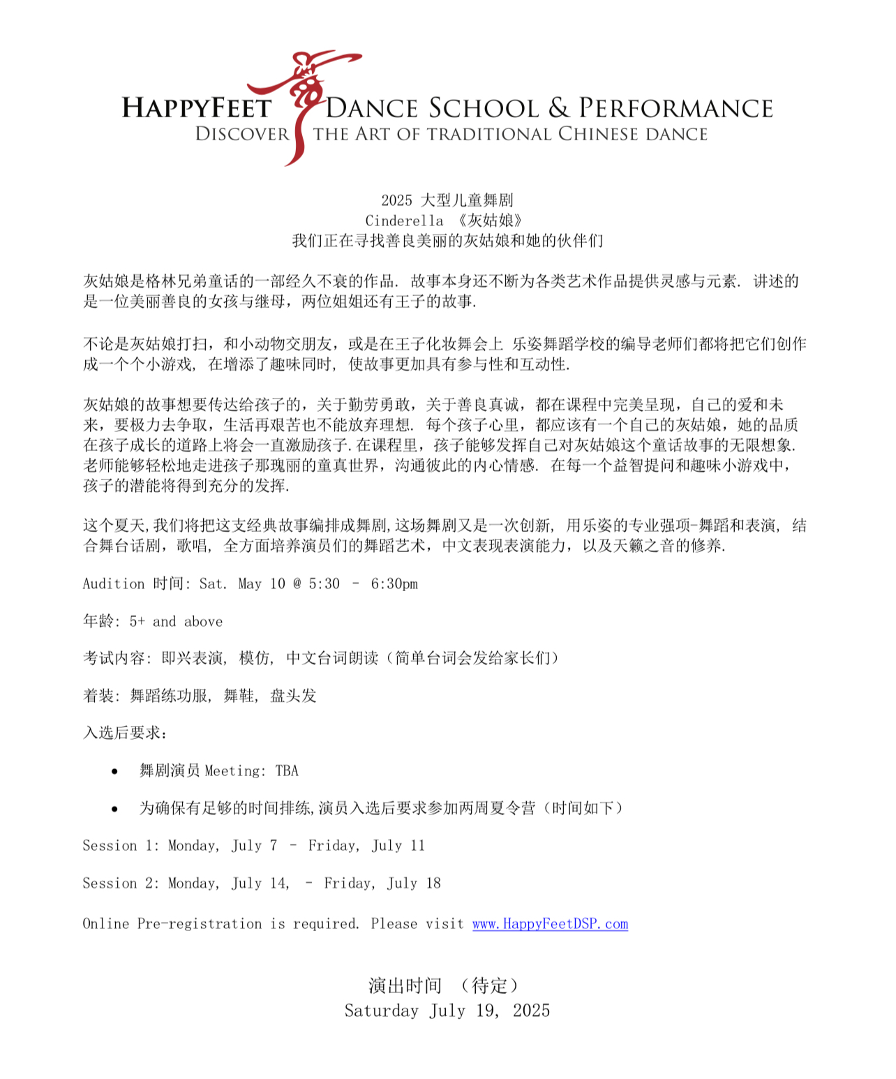 考试内容: 即兴表演, 模仿, 中文台词朗读(简单台词会发给家长们)