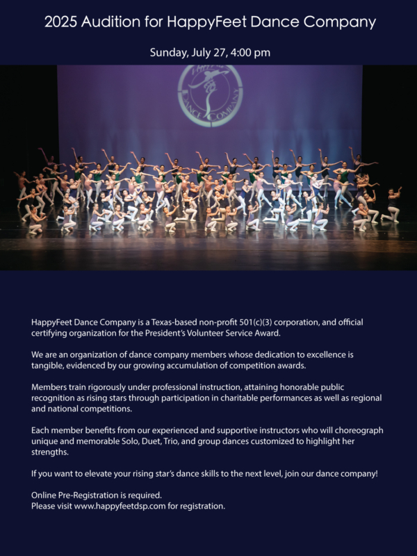 HappyFeet Dance Company is a Texas-based non-profit 501(c)(3) corporation, and official certifying organization for the President’s Volunteer Service Award.
